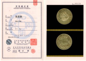 鑑定機関はPCGS,NGC,日本貨幣商協同組合発行鑑定書の3種類しかありませんので保有する際には本物保障の証も一緒に保存する事をお勧めします