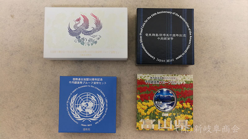 造幣局製天皇在位20年2点セット・奄美群島・国連千円・地方自治千円プルーフの買取がありました。弊社の得意分野の査定買取がありました。お客様も大変満足してお帰りになりました。切手・コイン等の処分は是非新岐阜商会でお待ちしております