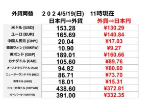 上記に価格掲示しましたが外貨⇒日本円の方をご覧ください