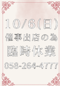 10月6日(日)終日休業