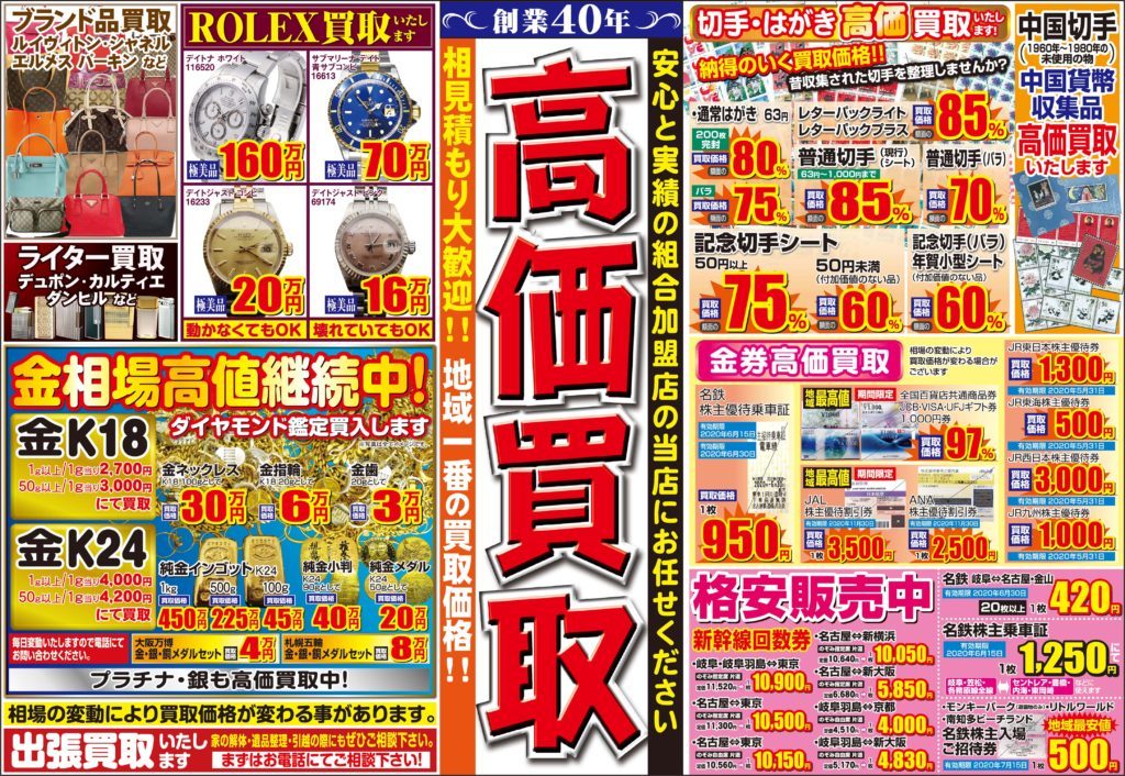 最新の広告掲載いたしました、地元で貢献できるお店目指しております、古銭切手酒類の専門店創業40年の新岐阜商会